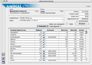 Sie haben in ANIMAL-office die Möglichkeit Laborbefunde selbst durch manuelle Eingabe der Messergebnisse zu erfassen und zu verwalten. Dies ermöglicht Ihnen eine individuelle Konfiguration der verschiedenen Untersuchungen.