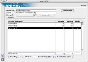ANIMAL-office zeigt anschließend die vorgegebenen Parameter mit den definierten Standard- bzw. Normwerten an.